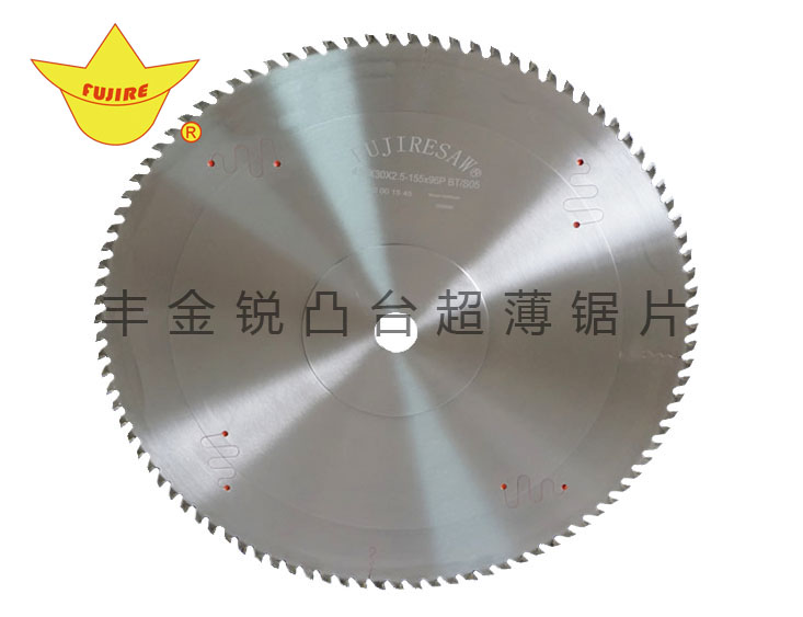 豐金銳凸臺超薄鋸片,巧妙的解決了上述問題,成為很多客戶不二之選。凸臺超薄鋸片作為豐金銳的專利產品,是大特點是鋸縫比常規的鋸片要窄1.5MM,省料達37.5%,一天下來節約成本200元以上,其實鋸片采用雙凸臺技術,保證鋸片不偏擺,確保鋸片使用壽命不減,這也是為什么豐金銳凸臺超薄鋸片如此受客戶親瞇的原因。在工藝方面,采用凸臺技術及特殊腰入片理,確認達到常規鋸片的性能,日本熱處理工藝及特殊的應力處理技術,從根本上確保鋸片使用壽命。